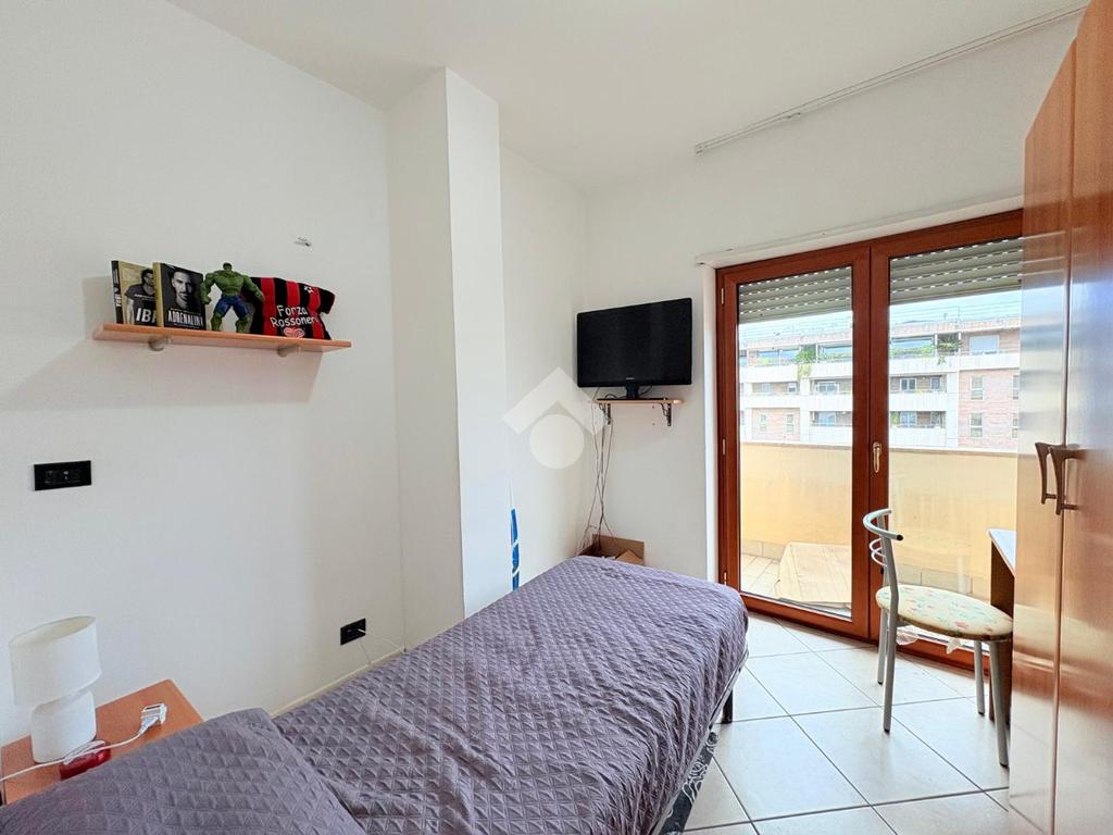 Appena entrati nell'appartamento veniamo subito accolti da una comoda cucina abitabile servita da terrazzo, con affaccio direttamente sulla via principale. In questa prima parte della casa accanto alla zona giorno troviamo la prima camera da letto singola.