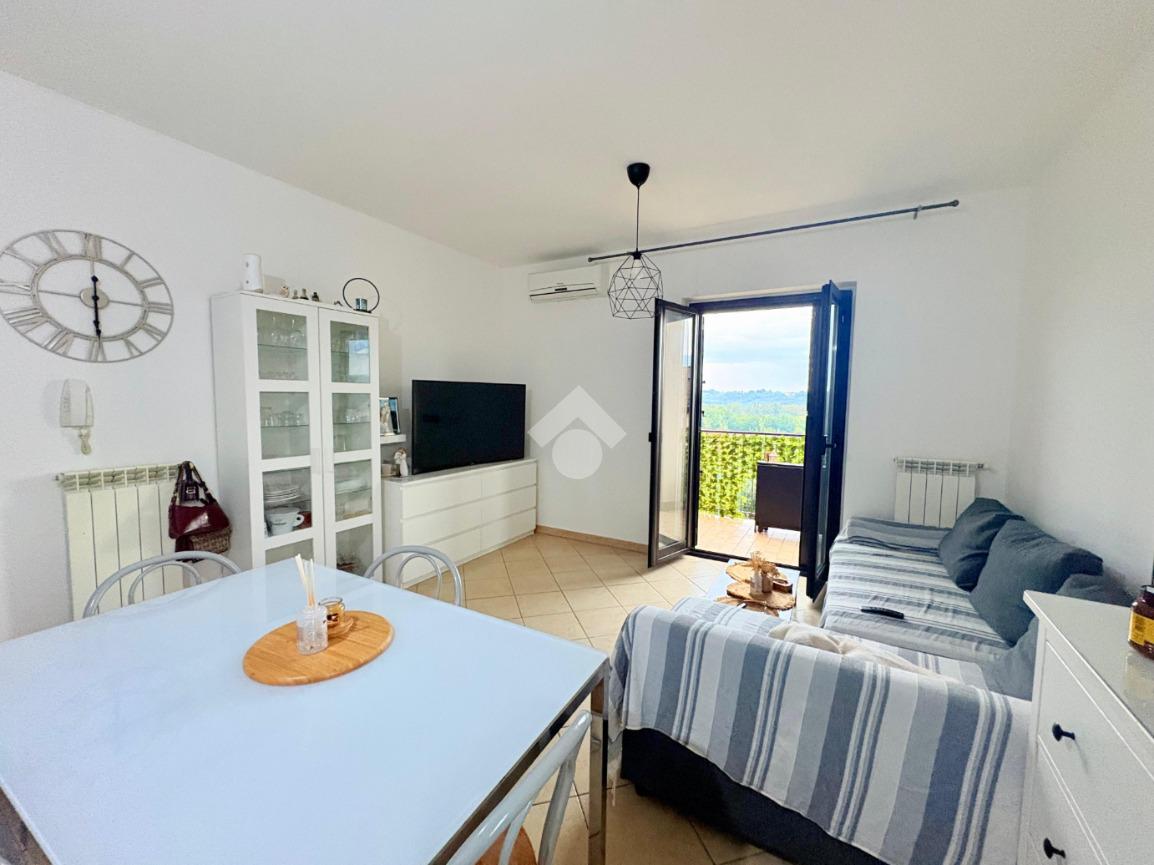 Entrando dal primo ingresso troviamo una comoda e spaziosa zona giorno con cucina a vista e balcone con vista panoramica. Camera da letto matrimoniale con balcone, seconda camera e bagno finestrato con doccia.