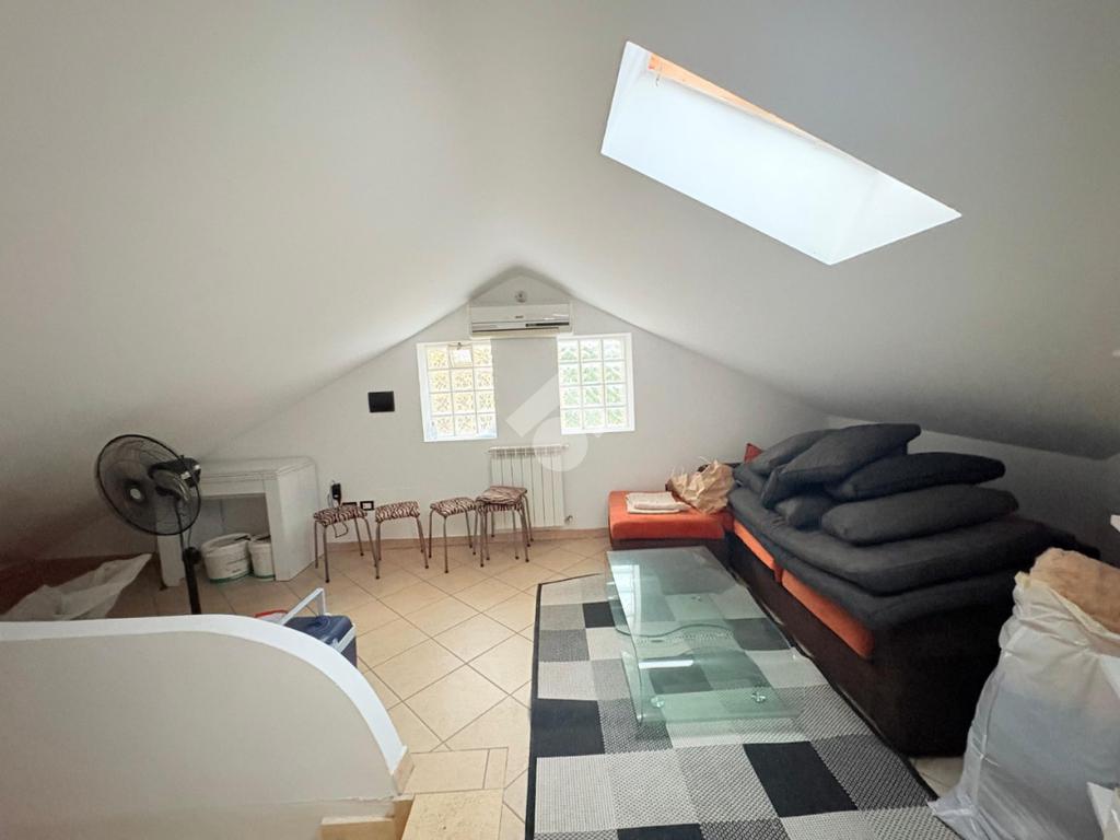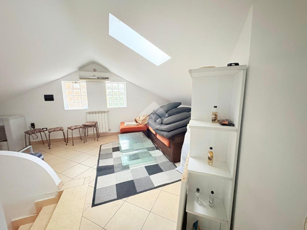 Al secondo livello troviamo un comodo ambiente unico attualmente adibito a zona giorno, cucinotto, camera da letto e bagno. Tutti gli ambienti sono dotati di lucernario.